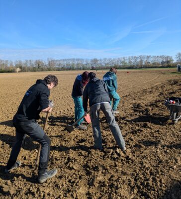 Nous menons également des actions de plantation avec des lycéens en formation agricole. Ces moments permettent de les sensibiliser à la biodiversité de manière concrète, dans une ambiance collective. Très motivés, ils s'impliquent pleinement dans les chantiers. Un grand merci à eux pour leur énergie et leur engagement sur le terrain !