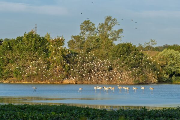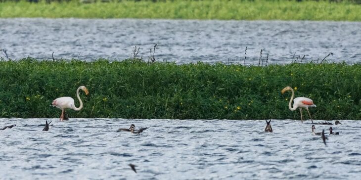 Le Marais d’Orx (Landes) est un point singulier pour le stationnement des Flamants roses.