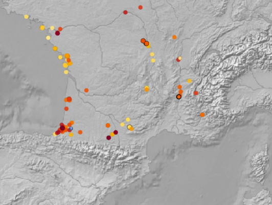 Mi-mars il reste encore 9 individus sur 3 sites : 4 à SFA, 4 au Vernet et 1 à Capens (assimilé à Palaminy pour simplifier le graphique) source Faune-France6