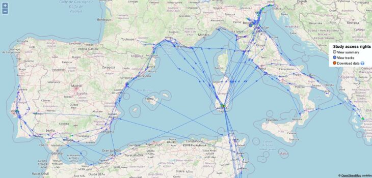 Il existe un autre programme de baguage d’oiseaux italiens en Emilie-Romagne qui illustre des déplacements tout aussi variés sur tout le bassin méditerranéen